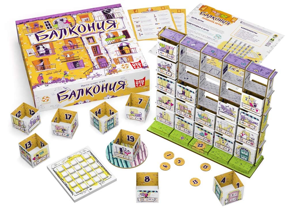 «Балкония» - дуэльная настольная игра в которой участникам предстоит заселять многоквартирный дом, стараясь учесть пожелания и особенности каждого жильца. Кто-то любит музыку, а кто-то разводит цветы, одни любят птичек, а у кого-то питомцы коты.