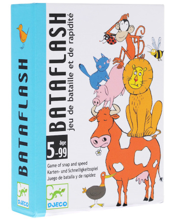 «Батафлеш» - настольная игра от компании Djeco на развитие внимательности и скорости реакции. Карточки с занимательными животными поднимут настроение играющим, а сама партия пролетит незаметно, и игрокам захочется сыграть еще.