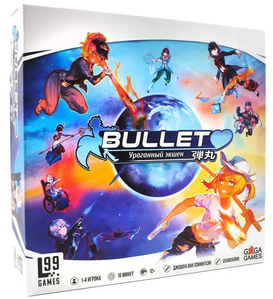 «Bullet» - динамичная настольная игра, оформленная в стиле аниме-сериалов и видеоигр жанра shoot’em’up с несколькими игровыми режимами. В ней игрокам в возрасте от 12 лет предстоит в режиме реального времени решать сложные головоломки, чтобы сохранить жизнь своим ассиметричным героям.