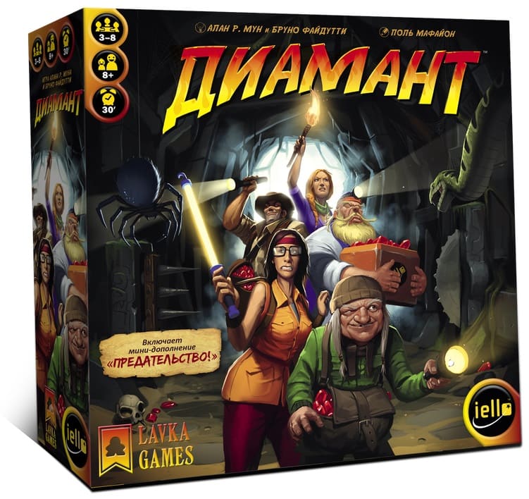 «Диамант» - легкая настольная игра на баланс риска и дохода. В ней игрокам предстоит спускаться в полную сокровищ и опасностей пещеру Такора. Сможете ли Вы устоять перед соблазном драгоценных камней и здраво оценив риски принять решение о том, когда стоит вернуться назад?