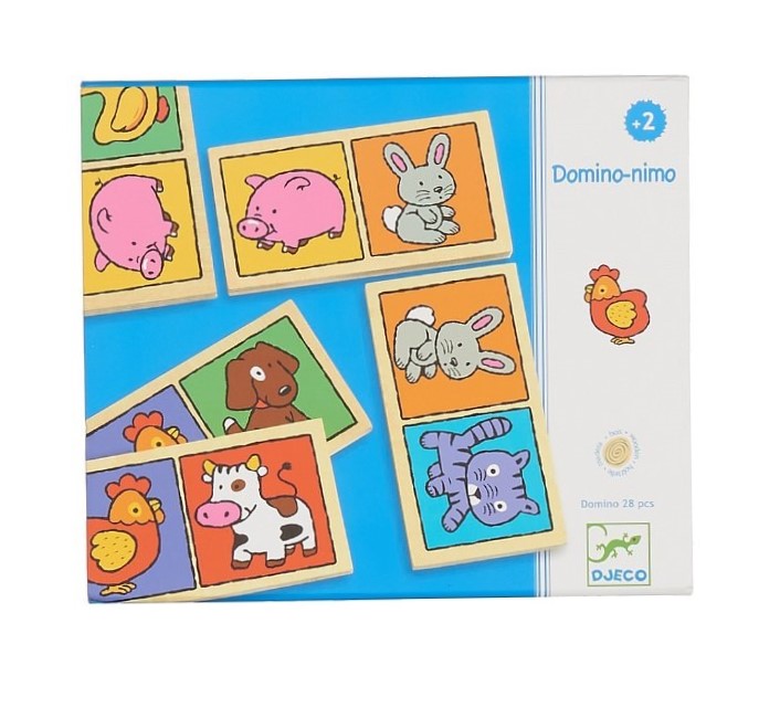 Детское Домино-нимо от Djeco - классическая настольная игра, которая прослужит вашему ребенку не один год. Ведь на выполненных из натурального дерева костях домино с одной стороны нанесены яркие рисунки зверей, а на другой - классические точки домино.