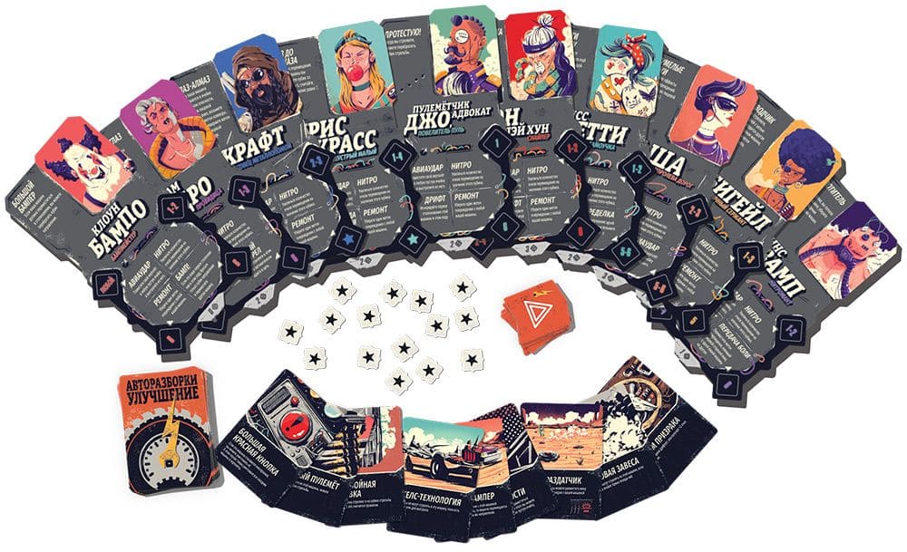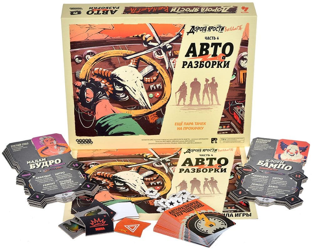 «Авторазборки» - третье дополнение к настольной игре «Дорога ярости: Вендетта». В его коробке находятся главари банд с особыми способностями и уникальными командами, а также улучшения, которые позволят вашим машинам пройти гонку на максимальных оборотах.