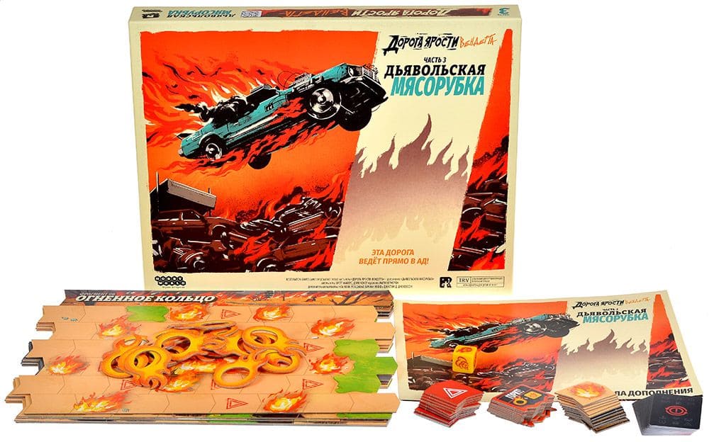 «Дьявольская мясорубка» - второе дополнение к настольной игре «Дорога ярости: Вендетта». В его коробке вы найдете новые рискованные трассы на пяти двусторонних фрагментах дороги с новыми опасными типами местности и эффектами.