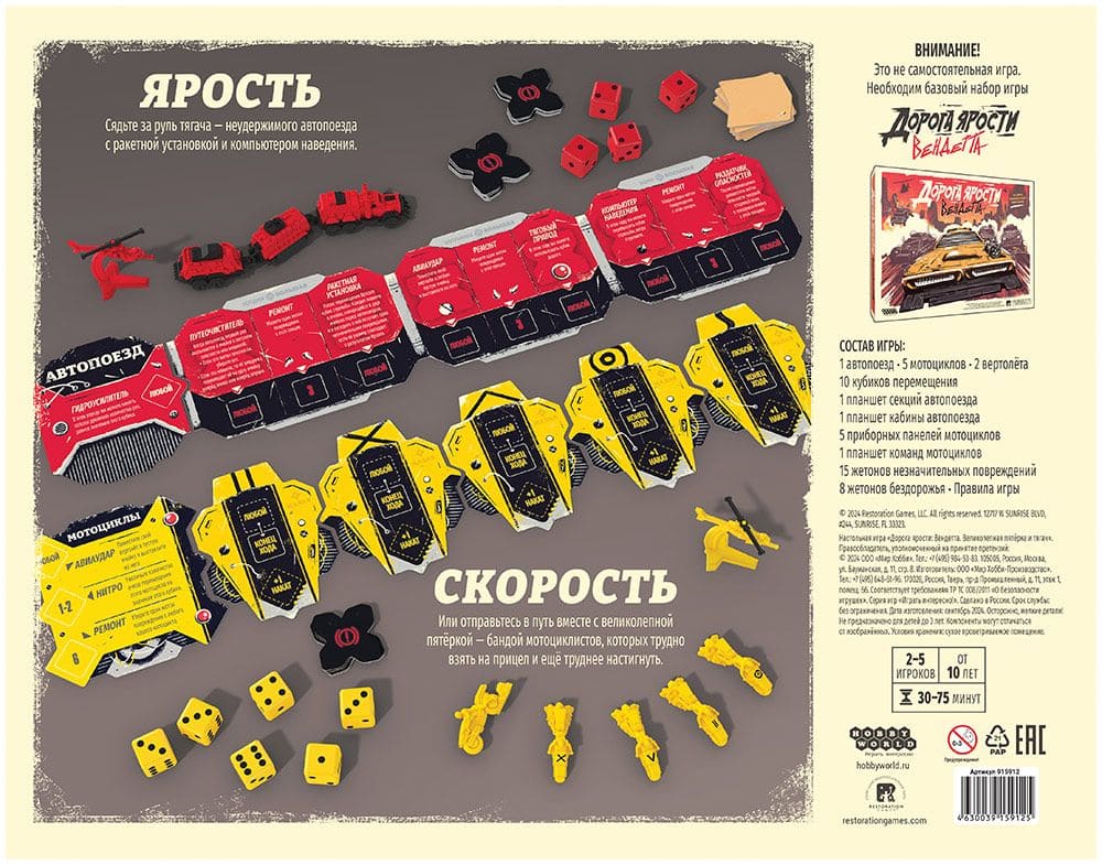 «Великолепная пятерка и Тягач» - дополнение к настольной игре «Дорога ярости: Вендетта». В его коробке вы найдете новых необычных участников гонки: