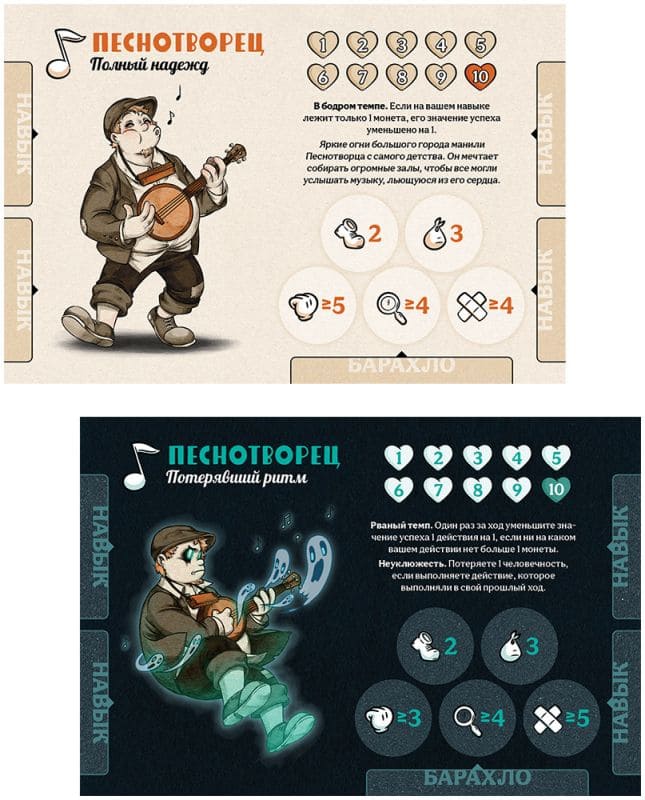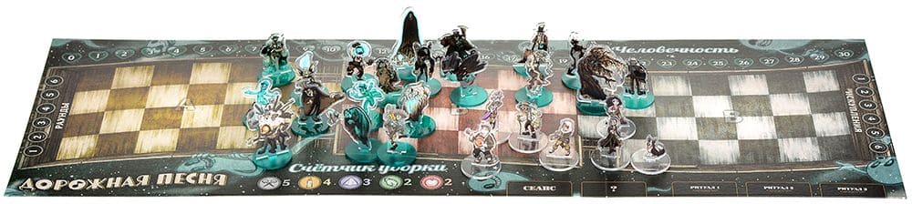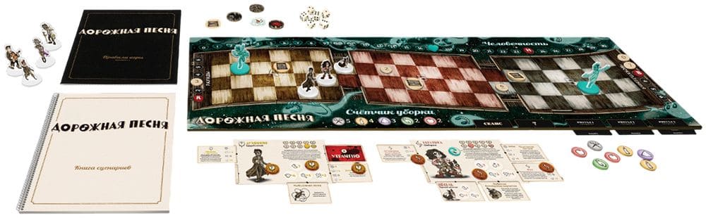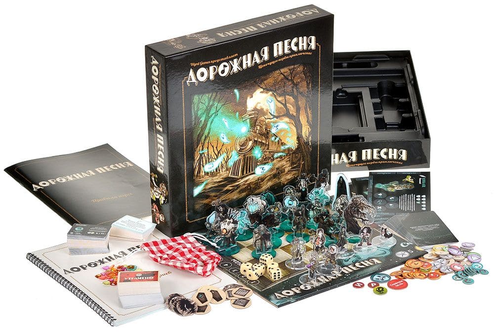 «Дорожная песня» – сюжетная кооперативная настольная игра в которой команде участников предстоит стать невольными пленниками мистического поезда с привидениями. Боритесь с призраками, меняйте свой стиль игры при помощи новых навыков и снаряжения и раскрывайте все тайны "Серебряного паромщика". Пройдя два десятка сценариев, найдите путь к спасению!