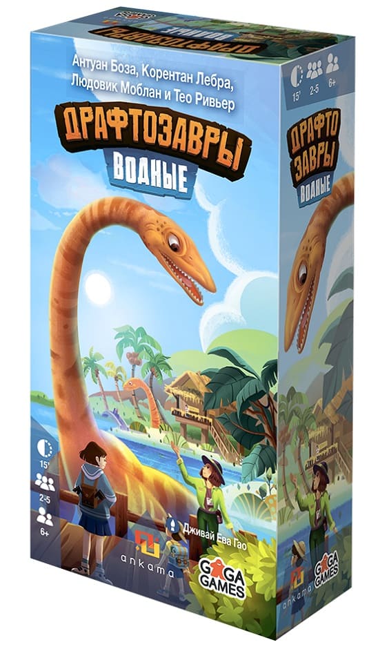 «Драфтозавры: Водные» - это дополнение к одноименной настольной игре, в которой участники строят свои динопарки, размещая различные виды динозавров по вольерам. Данное дополнение добавляет в игру новый вид динозавров – ластоногих плезиозавров, вольерами для которых будут участки реки, расположенные на дополнительных планшетах.