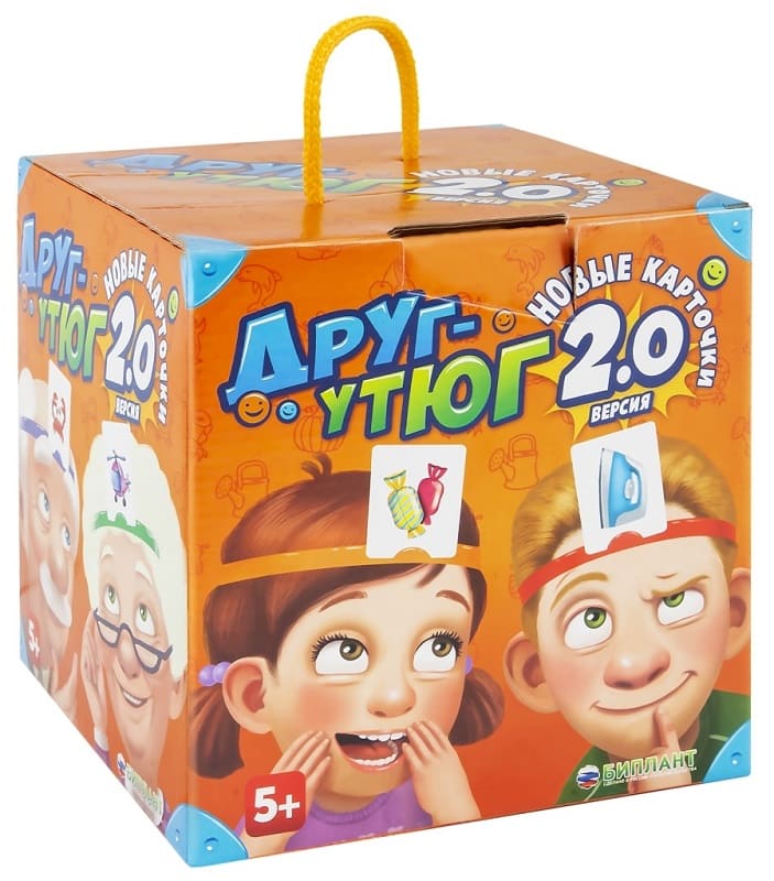 «Друг-утюг. Версия 2.0» - обновленный вариант игры на тему «Кто я? Что я?» от российской компании «Биплант». Она содержит абсолютно новые задания, сохранив при этом оригинальный дизайн коробки с качественной игровой атрибутикой.