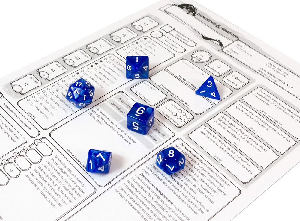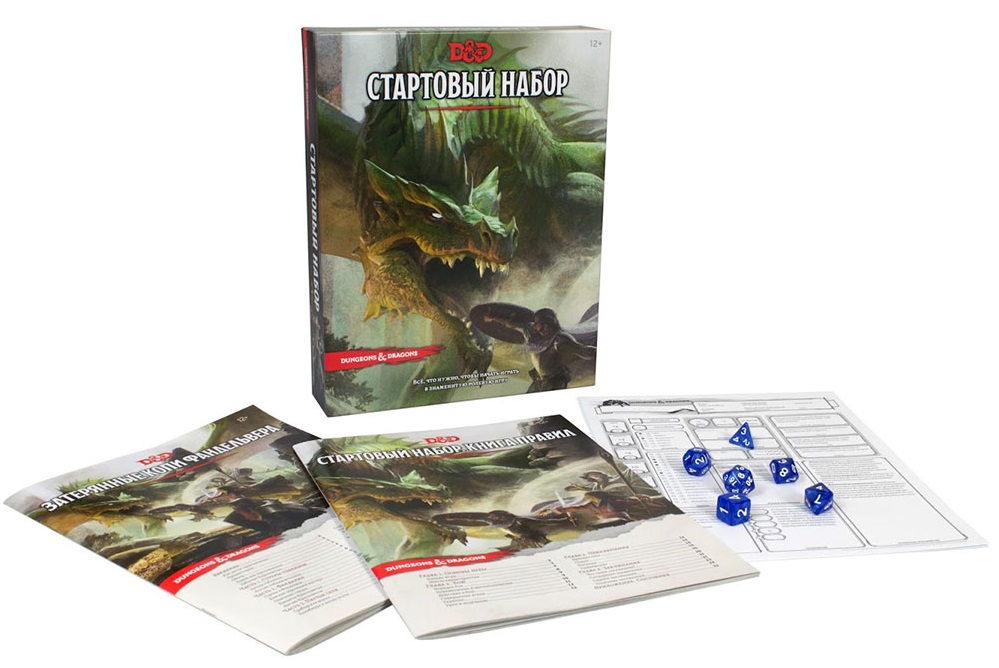 «Стартовый набор Dungeons & Dragons» - это замечательный вариант для новичков, готовых погрузится в мир D&D. Он содержит 5 готовых персонажей со своими бланками и набор игровых костей. В помощь игрокам приложена Книга правил, а Мастер Подземелий получит свою Книгу приключений.