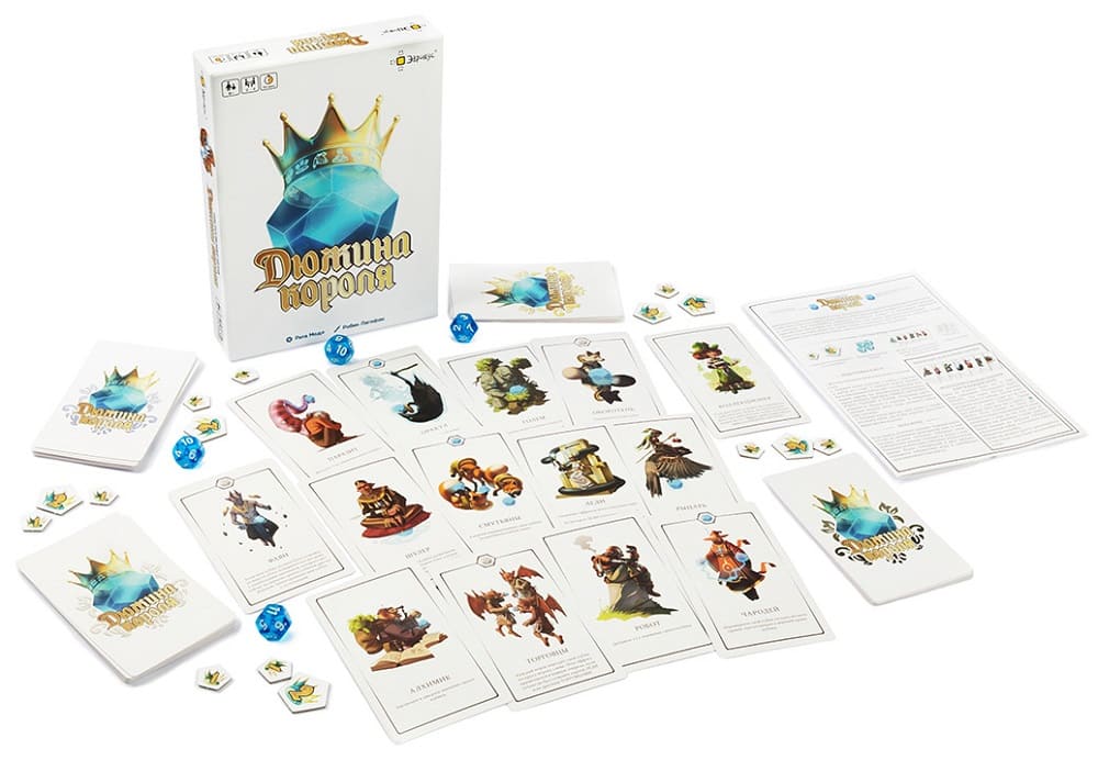 Основными компонентами игры «Дюжина короля» являются наборы игроков, состоящие из 1 двенадцатигранного кубика и индивидуальной колоды из 12 карт. Перед началом каждой партии игроки оставляют в своих колодах только 7 карт, одна из которых должна быть одинакова во всех колодах. Каждая карта имеет один или несколько написанных на ней эффектов, применение которых приводит к изменению значения кубика.