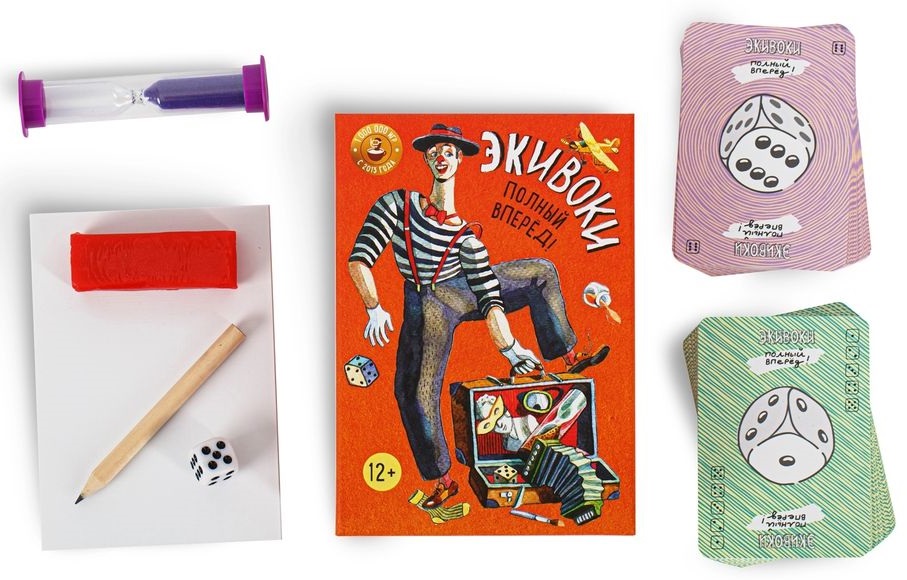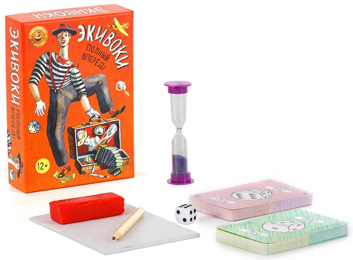 "Экивоки Полный вперед!" - это новая дорожная версия популярной российской игры на ассоциации от издательства "Экивоки". Компактные размеры игры, позволяют не отягощая свои чемоданы весом и объемом брать игру в поездки. По заявлениям производителя, входящих в комплект карточек с заданиями с лихвой хватит для того чтобы скоротать перелет из Москвы в Рио-де-Жанейро.