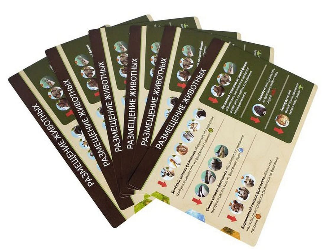 - 32 карты: 10 синих карт, 16 коричневых карт, 6 карт особых участков местности;