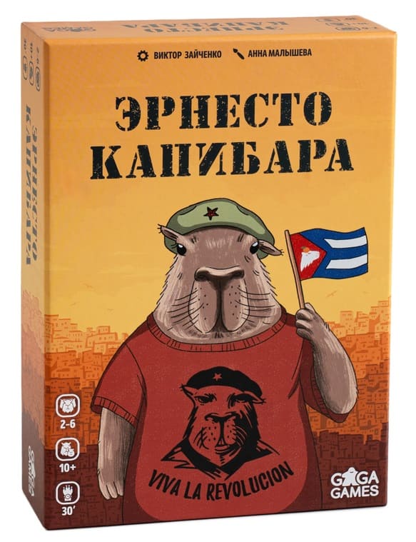 «Эрнесто Капибара» - веселая и динамичная карточная игра, в которой игрокам предстоит предстать в роли капибар, за чьим добродушием и улыбочками скрываются прирождённые интриганы и манипуляторы. Здесь вы сможете почувствовать себя настоящим мастером скрытой манипуляции и тайных заговоров, а главная цель каждого игрока – устроит революцию, ничего не делая самостоятельно.