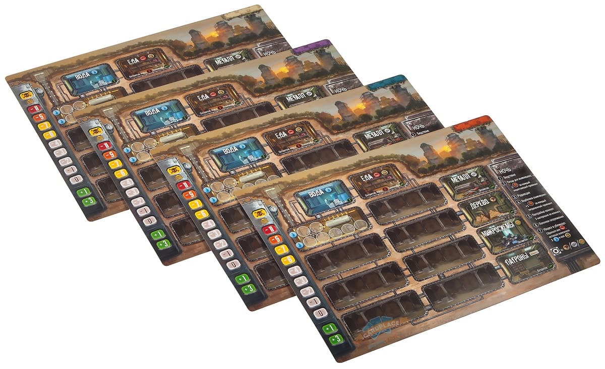 Каждому участнику игры «Еще один день» предстоит стать лидером своего подземного убежища, который за шесть игровых ходов (дней) должен довести свою колонию до того уровня, чтобы она была признана караваном достойной для переселения.