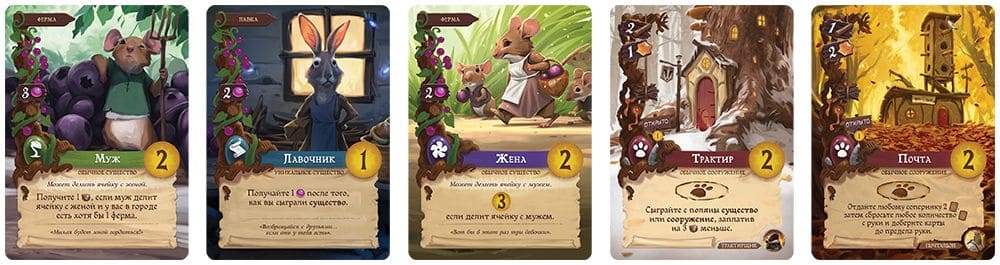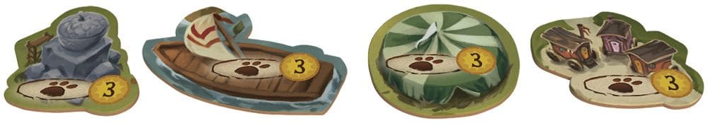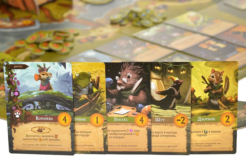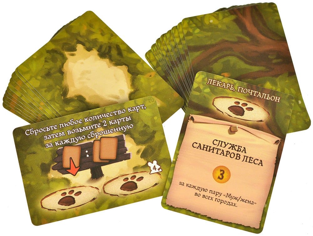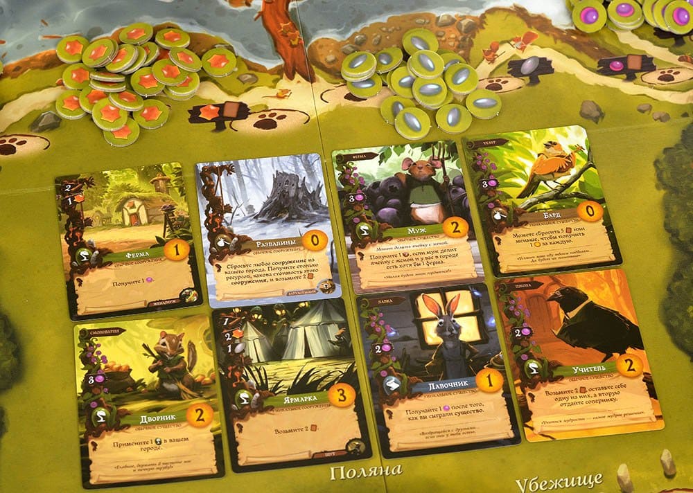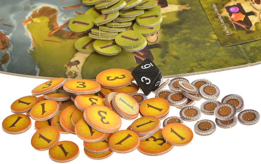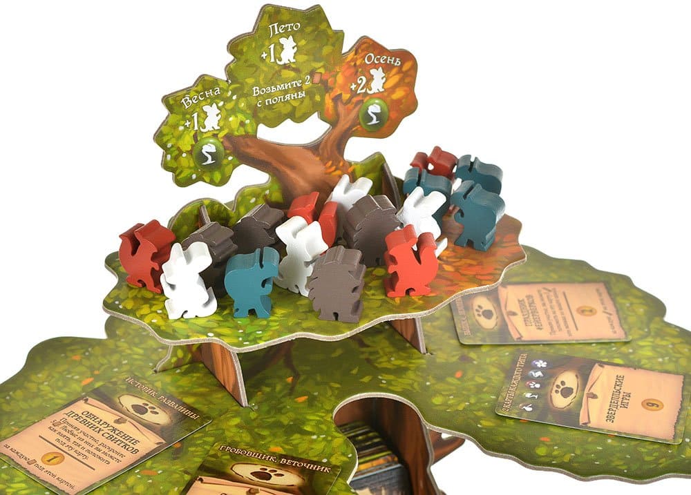 - 110 жетонов ресурсов: ягод, веток, смолы и камушков;