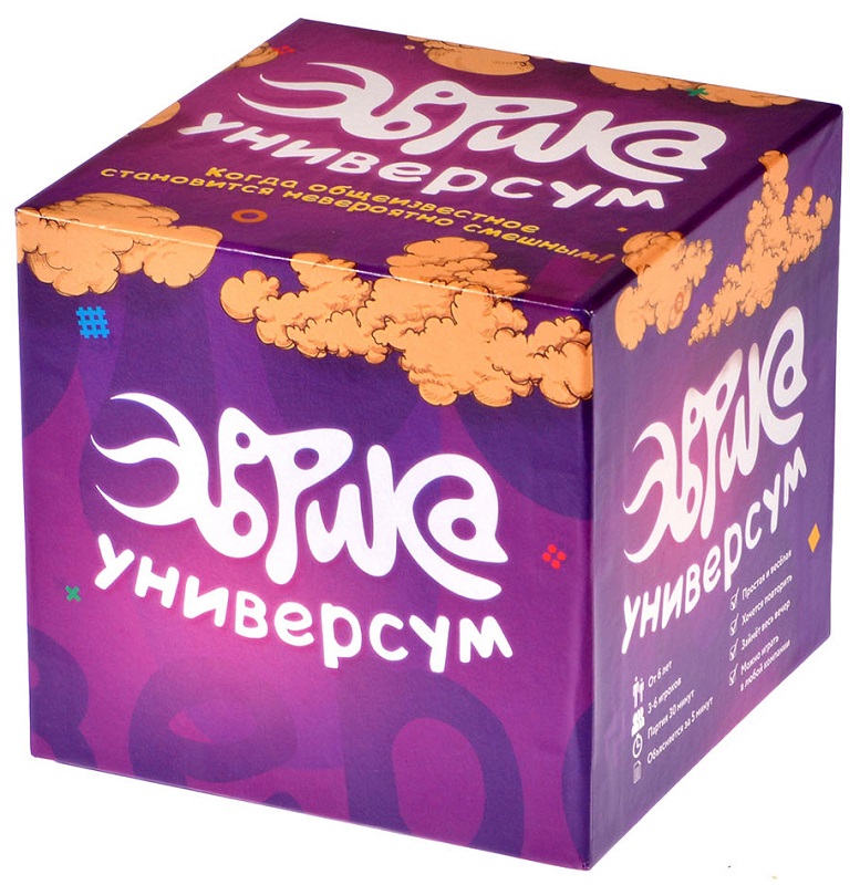 «Эврика Универсум» - это самая большая по объему заданий версия игры. Символы на картах одинаковые, а вот задания уникальные, и не похожи друг на друга не только внутри комплекта Универсум, но и с другими версиями игры. Так что, если Вы фанат игры «Эврика», смело покупайте этот набор.