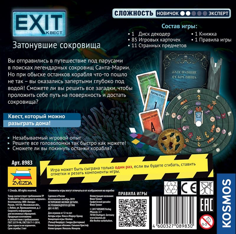 Купить недорого настольный EXIT-Квест: Затонувшие сокровища можно в нашем магазине оформив заказ на этой странице или позвонив нам по телефону.Комплектация