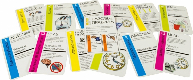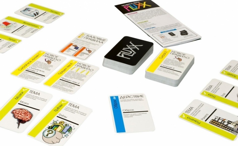 Настольная игра Fluxx знаменита тем, что правила игры в ней устанавливают разыгрываемые карты, и поэтому каждый новый ход игровая ситуация может поменяться. Изменится может очень многое, даже условие при котором кто-то из игроков выигрывает. Кажется все очень запутанным, но на самом деле это не так. Кое-какие неизменные принципы игры присутствуют, да и подробное описание на каждой карте облегчает жизнь даже начинающим игрокам.
