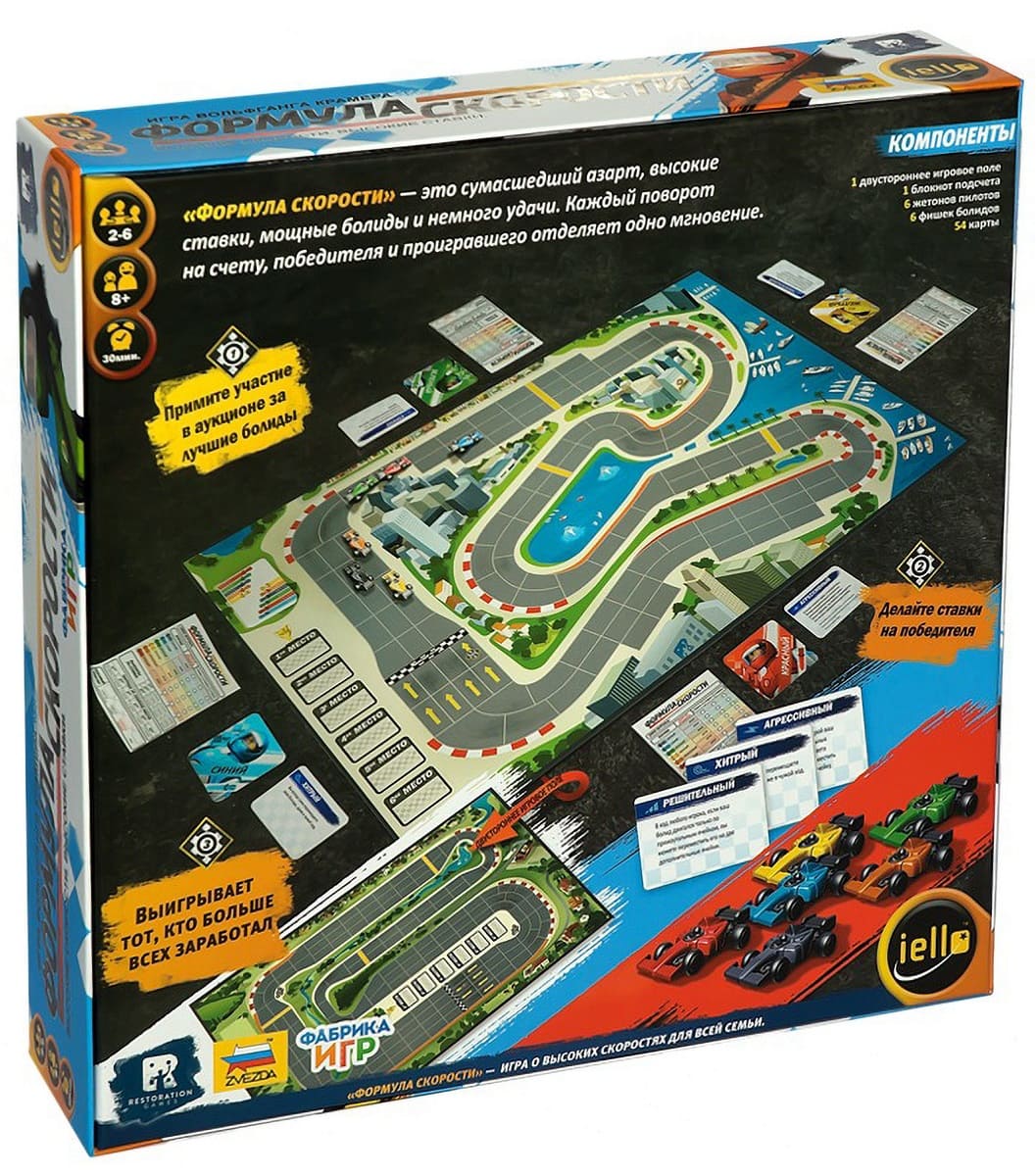 «Формула скорости» — настольная игра о гоночных болидах, сочетающая в себе механики аукциона, тотализатора и колодостроения. Ее автор является легендарный Вольфганг Крамер, а сама игра прошла многие годы тестов и несколько переизданий. На этой странице представлена самая свежая версия игры.