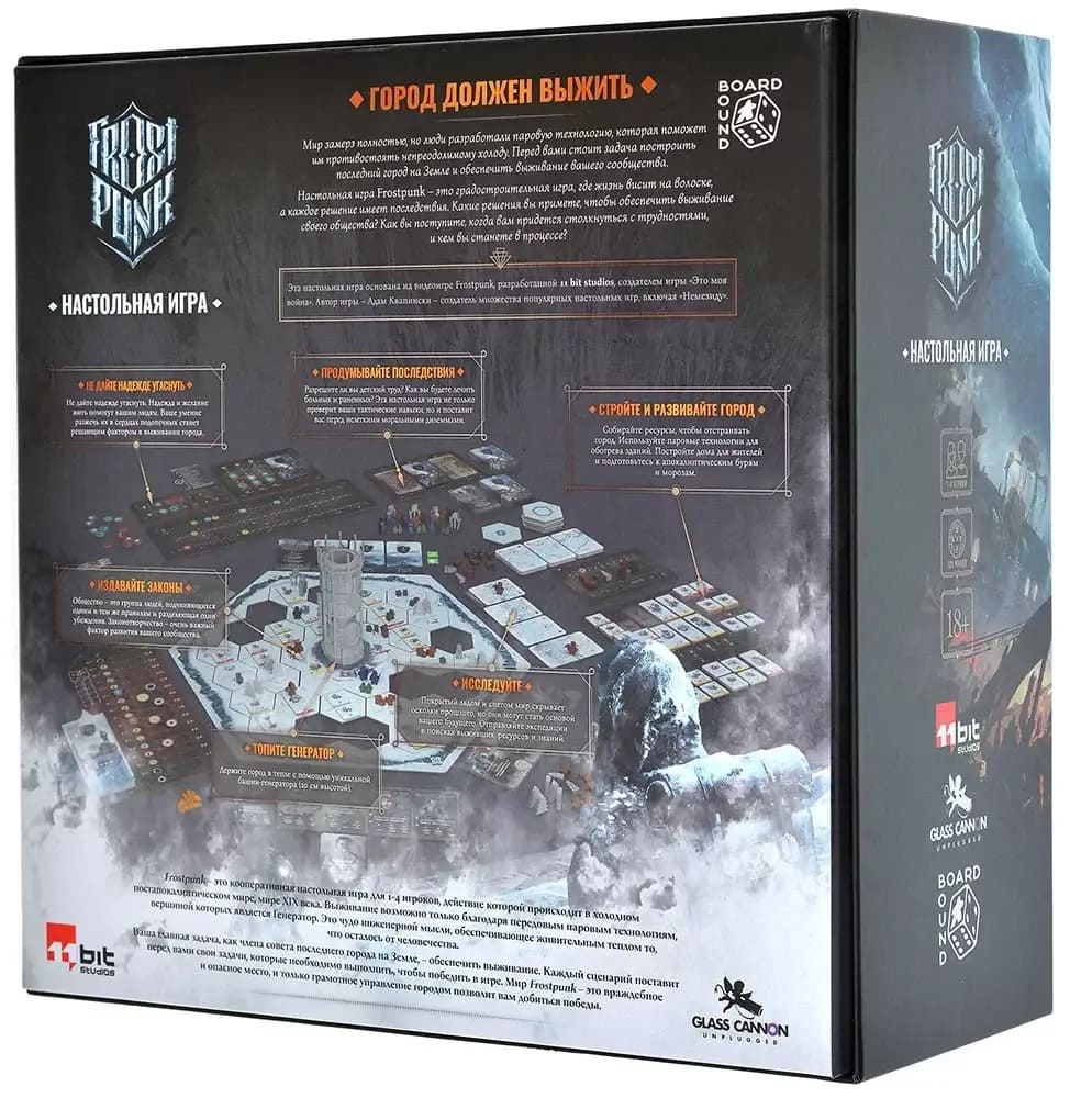 Frostpunk: Настольная игра – русскоязычная версия кооперативной игры, в которой в которой вам предстоит войти в роль лидера маленькой колонии уцелевших в ледяном апокалипсисе. Основной игровой процесс не так сложен в своей сути, сколько в том, какие жестокие вызовы он будет бросать вам на протяжении всей партии. Ваша основная обязанность – как можно эффективнее управлять инфраструктурой развивающегося города и его гражданами.