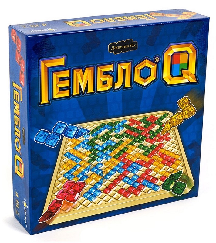 «Гембло Q» - это пространственная стратегическая настольная игра в основе которой лежит игровая механика «Блокус». В версии «Q» фигуры фишек игроков состоят из квадратов, а максимальное количество участников игры - 4. Возможно, буква Q – обозначает ‘quadratum’ (квадрат по латыни) или ‘quattuor’ (четыре), но в правилах написано этой буквой обозначается точка соединения фишек игрока.