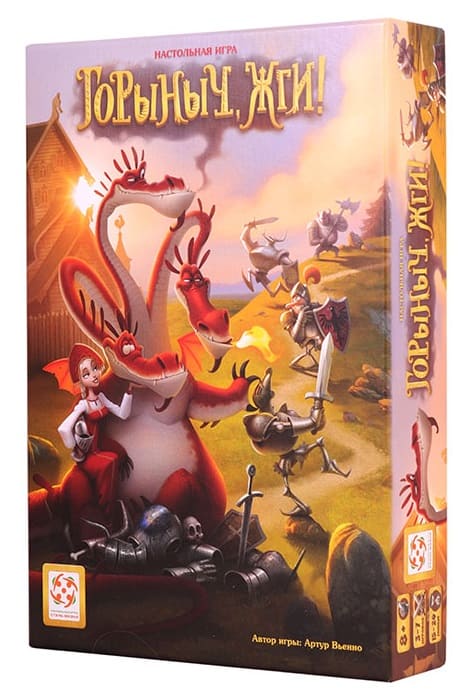«Горыныч, жги!» - увлекательная кооперативная настольная игра, в которой команде участников придется управлять добрым Змеем Горынычем, который должен защитить царевну Прекрасную от алчных заморских рыцарей-авантюристов, пытающихся завладеть ее несметными сокровищами.