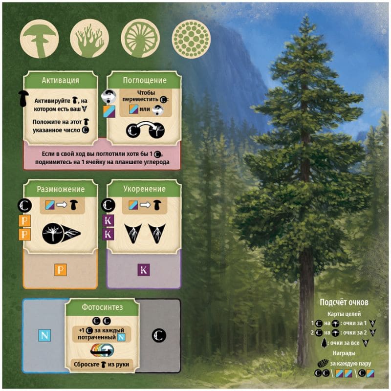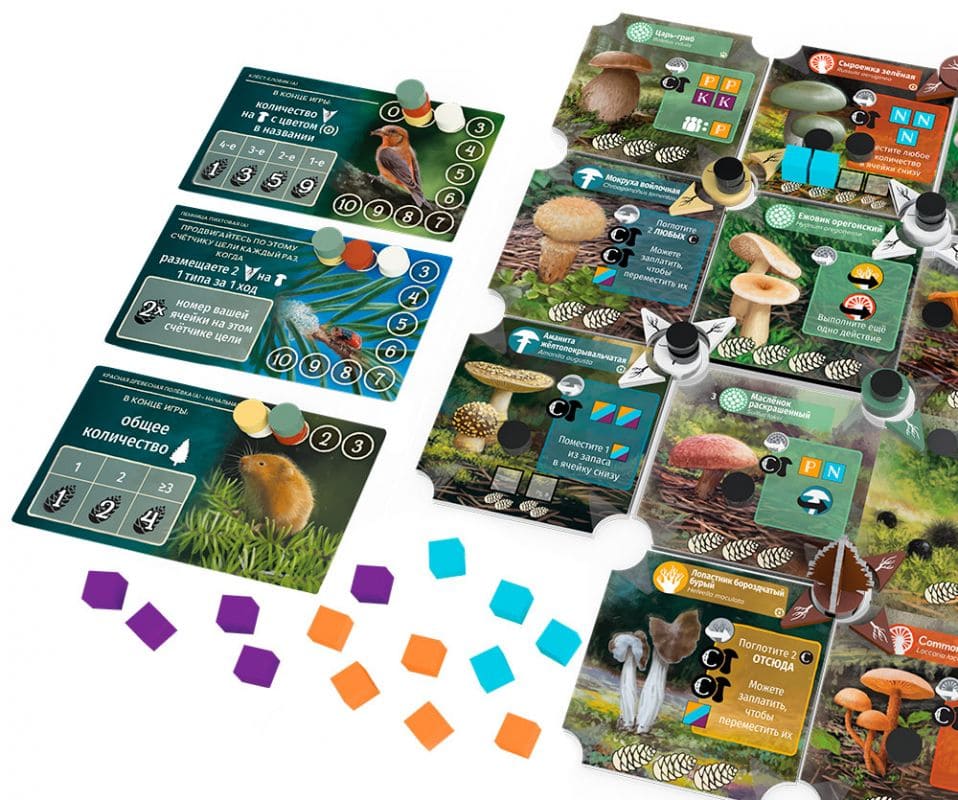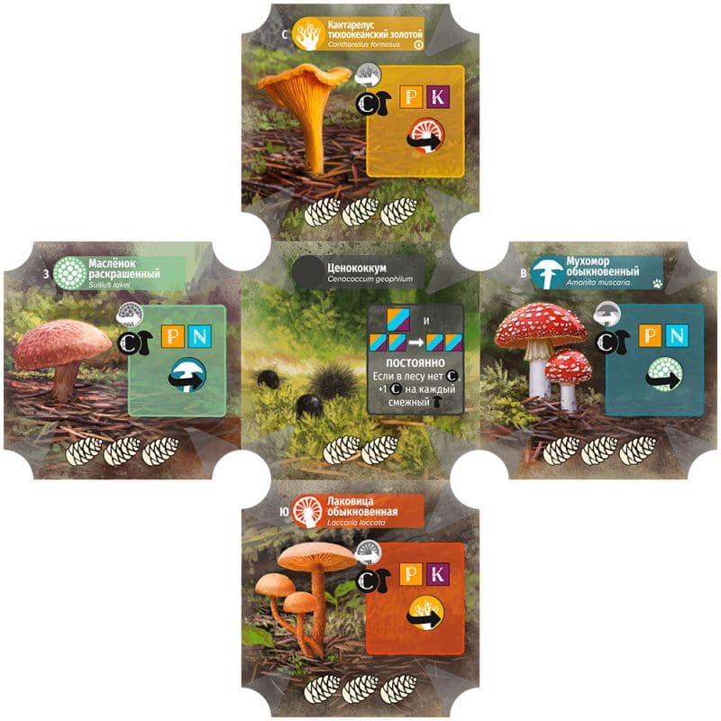 Мир природы полон чудес, одно из которых — симбиоз грибов и растений. Они поддерживают друг друга, образуя уникальную взаимосвязь, где каждый элемент зависит от другого. Грибы помогают деревьям расти и развиваться, а растения обеспечивают своим грибным спутникам необходимые условия для процветания. Этот волшебный танец жизни воспроизведён в настольной игре «Грибы и корни».