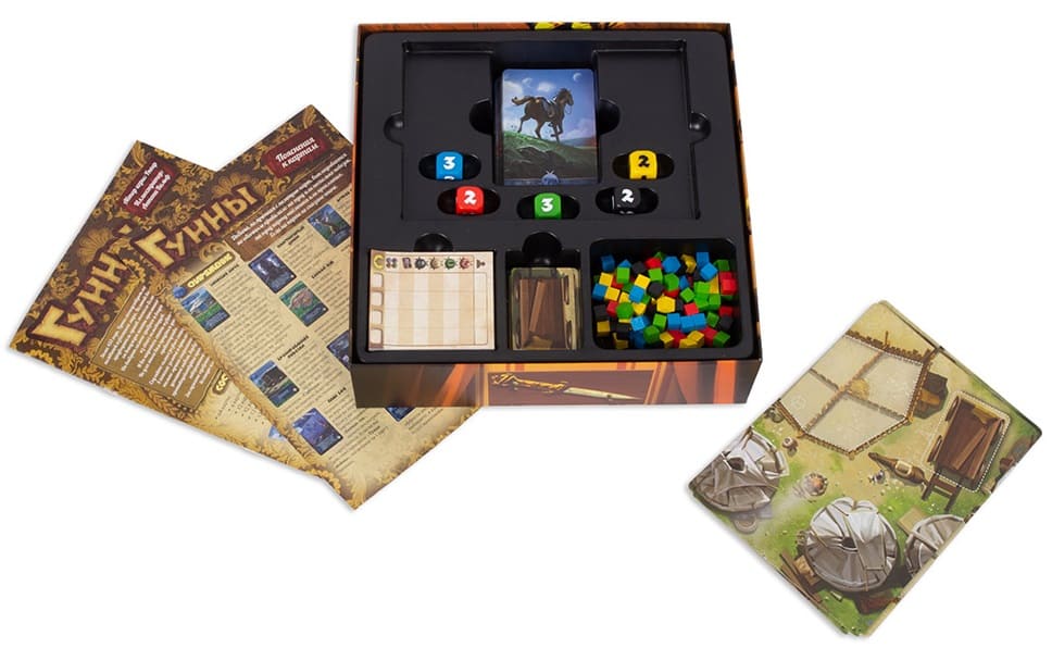 «Гунны» - стратегическая настольная игра, в основе игрового процесса задействовано несколько игровых механик: драфт кубиков, построение движка и набор сетов. Несмотря на некоторую «конфликтность» между игроками, игру смело можно рассматривать в качестве семейной – правила игры осваиваются за 10 минут, а продолжительность партий редко превышают 1 час. Большое наслаждение «Гунны» принесут кинестетикам: в игре очень много красивых игровых компонентов и взаимодействия с ними.