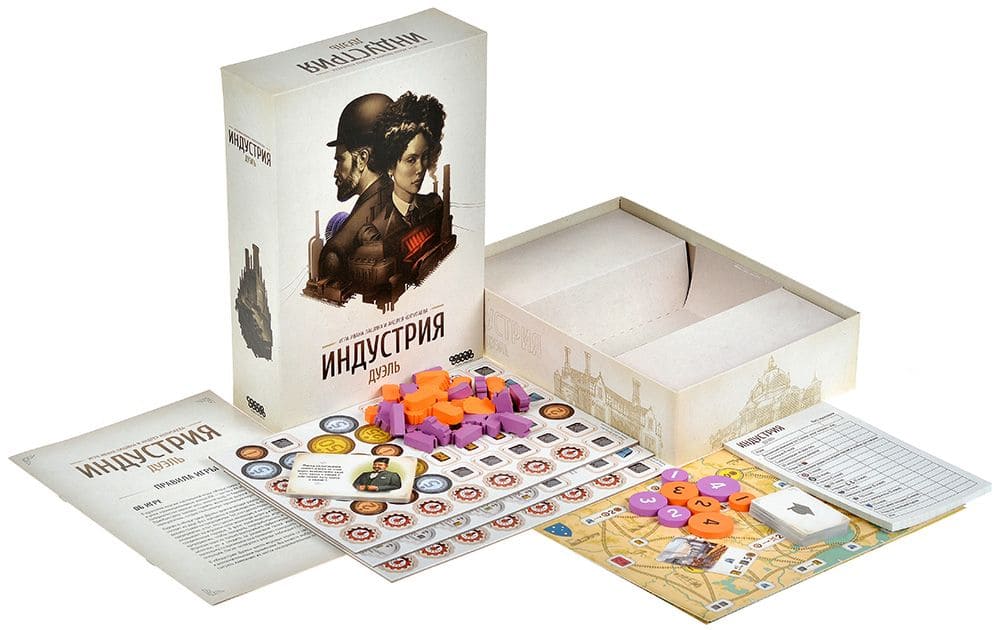 «Индустрия: Дуэль» - версия популярной экономической настольной игры «Индустрия», в которой двум игрокам предстоит примерить на себя роли промышленных магнатов конца XIX – начала XX века и вступить в жесткую конкурентную борьбу, которая распространится на весь земной шар, от Европы до США и Австралии. Для того чтобы одержать верх над соперником приобретайте фабрики и заводы, прокладывайте железные дороги и выстройте свою глобальную промышленную империю!