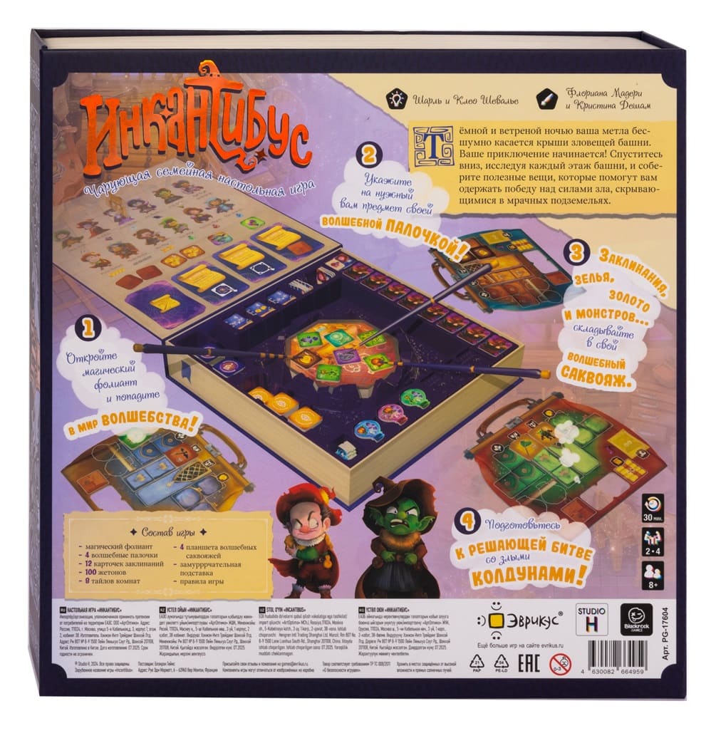 «Инкантибус» — семейная настольная игра, в которой игроки выступают в роли отважных волшебников, исследующих таинственную зловещую башню. Цель каждого участника — проявить находчивость, собрать самые ценные артефакты, подготовить снаряжение и в финале одолеть могущественные силы зла, скрывающиеся в подземелье, чтобы заслужить почётный титул «Великий волшебник» или «Великая волшебница».