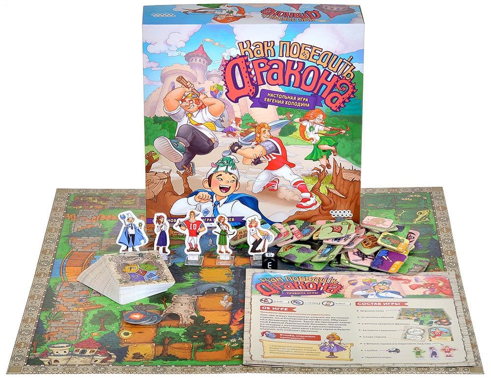 «Как победить дракона» – приключенческая настольная игра, в которой участники становятся выпускниками Академии Героев, сдающими Единый Геройский Экзамен. В ходе испытания им предстоит спасти прекрасную Принцессу (точнее ее манекен) и доказать, что обучение прошло не зря. Постройте свой путь к спасению Принцессы, преодолейте все препятствия, встречающиеся на нем, одолейте всех врагов и в конце победите Дракона.