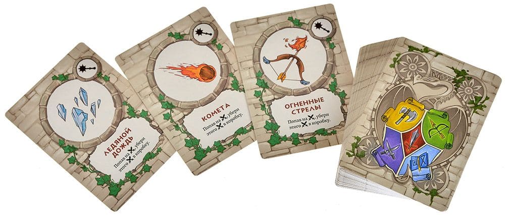 - Карты событий меняют ситуацию на игровом поле, делая партию непредсказуемой.