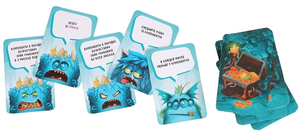 Процесс зельеварения осложняется тем, что игрокам запрещено сообщать другим игрокам о своих картах на руках. Максимум, что могут игроки поведать друг другу – это какой элексир они собираются варит, или в какую стопку планируют выложить свой компонент. Впрочем, «Кахут» - это настольная игра, и правила всегда можно во взаимной договоренности упростить.