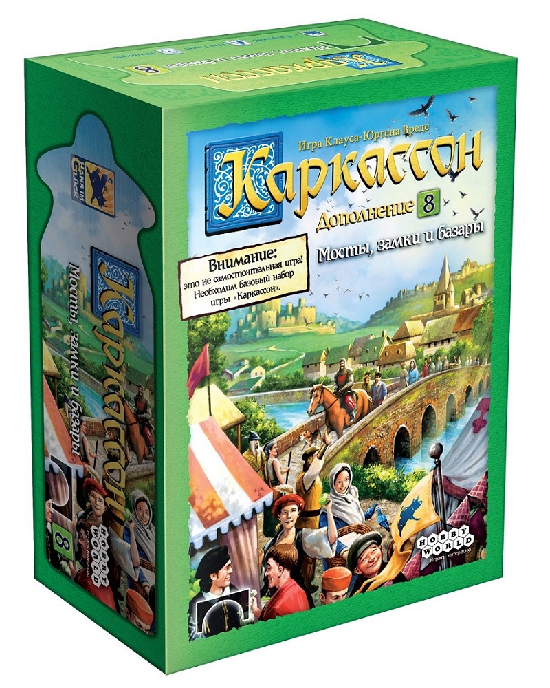 Дополнение «Мосты, замки и базары» помогает реализовывать инфраструктурные проекты на землях «Каркассона», теперь совсем не страшно если дорога упрется в городскую стену - возводите мост и смело продвигайтесь вперед. А еще с помощью него на месте малых городов можно возвести замок, и собрать горсть победных очков за завершенных объект. Ну и кроме этого, теперь игроки могут на базарах вступать в торги за тайлы территорий.Как и все прочие дополнения, «Мосты, замки и базары» можно полностью или частично сочетать с любым другим дополнением к игре «Каркассон».