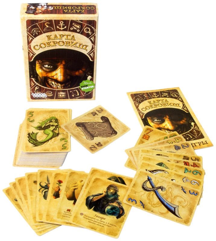 «Карта сокровищ» - азартная карточная игра на баланс риска и расчёта. Каждый игрок в ней становится пиратом, старающимся утащить в свой тайник как можно больше сокровищ. Но слишком жадные флибустьеры лишаются всего, и их добыча уходит конкурентам.