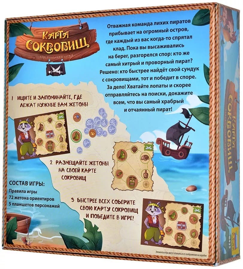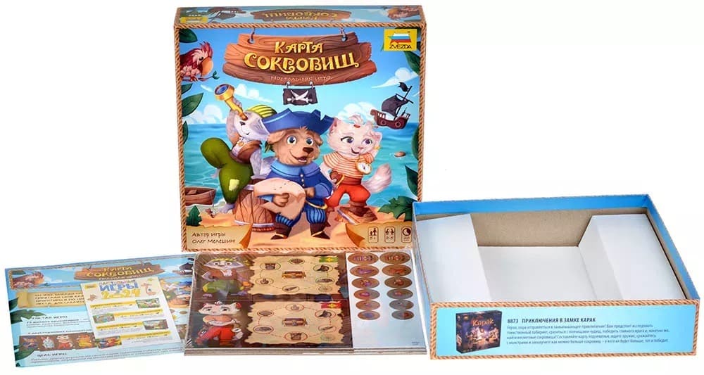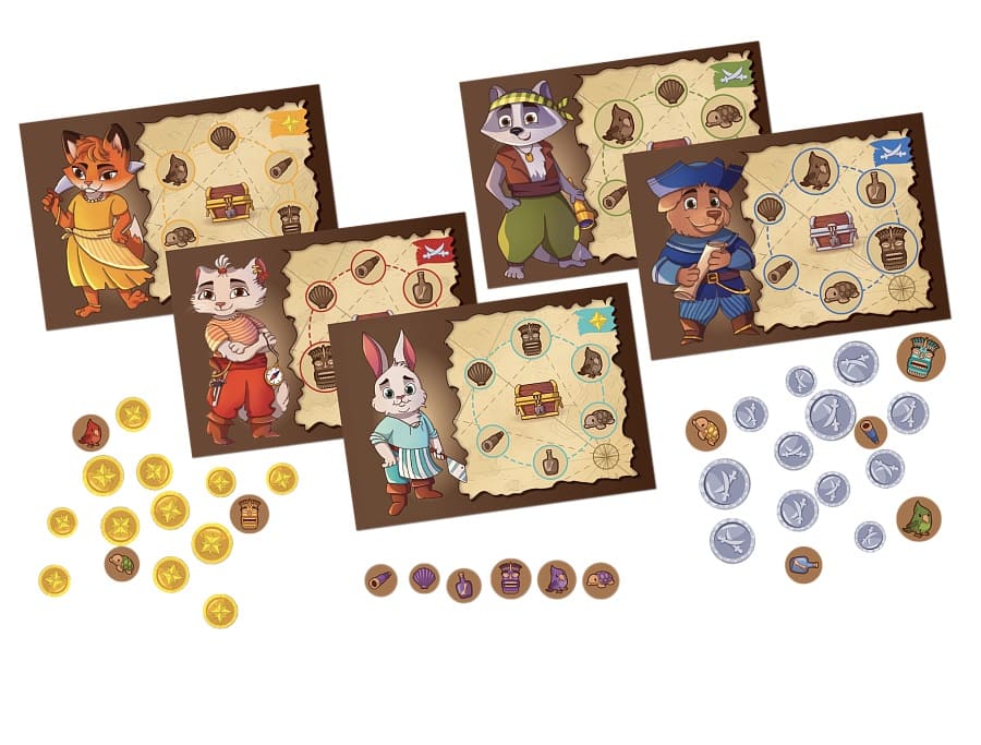 Эта игра на внимательность, глазомер и запоминание, в которой игрокам предстоит на глаз определять размер жетонов, запоминать, где находятся нужные им и размещать их на своих планшетах. Победит тот, кто первым соберёт все жетоны на своей карте сокровищ.