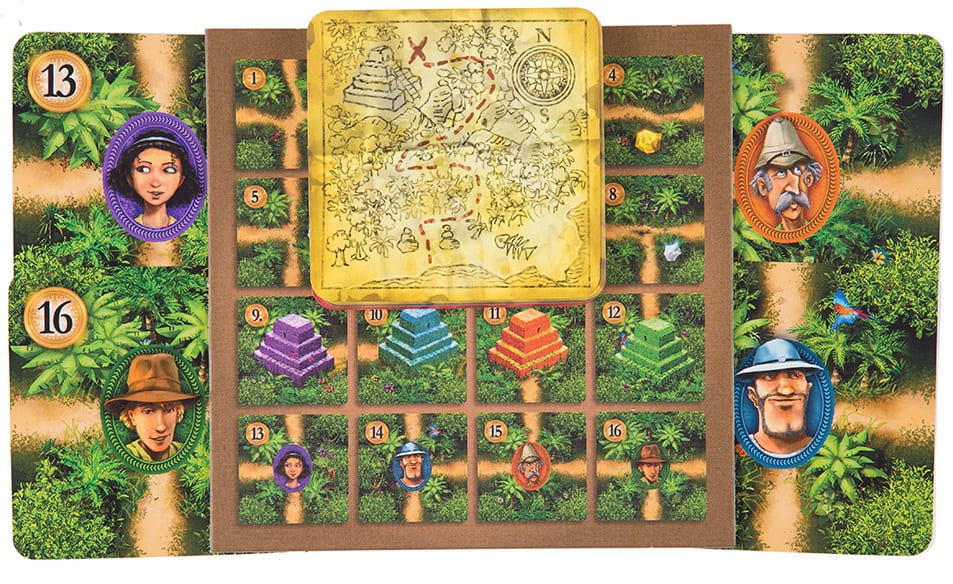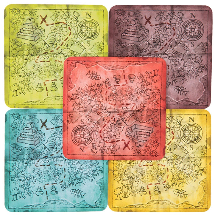 В начале каждой партии игры «Каруба» участники получают индивидуальные наборы карточек, из которых они будут формировать собственную карту острова размером 4 на 4 карты. Каждая карта – это часть пути с нанесенными на нее тропами, сокровищами и храмами. Для получения победных очков игроку необходимо соединить тропинками каждого археолога с храмом того же цвета. Попавшиеся на пути самородки золота и алмазы, также приносят дополнительные очки.