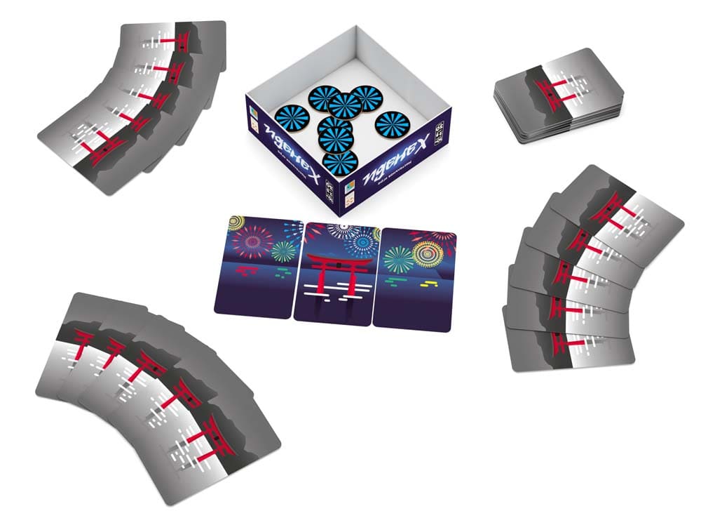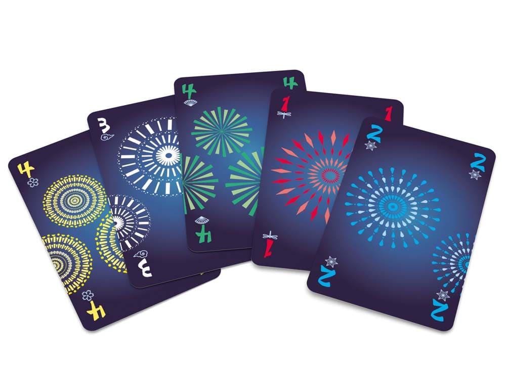 В игре «Ханаби» участники становятся командой пиротехников, которым предстоит показать красивейшее шоу фейерверков. Для решения этой задачи игроки должны выложить на стол ряды карт каждого цвета с номерами от 1 до 5. Все было бы просто, если бы каждый игрок видел свои карты. Но так как игрокам открыты только чужие карты, они вынуждены давать друг другу различные подсказки, которые можно делать определенным способом, сообщая только частичную информацию о нужной карте – цвет или номер. Но даже это нельзя делать бесконечно, в итоге игрокам приходится просто сбрасывать карты ради получения новых подсказок. Победа команды игроков определяется суммой набранных очков, которые показывают уровень восторга зрителей от запущенных фейерверков от освистания до ошеломительных оваций.