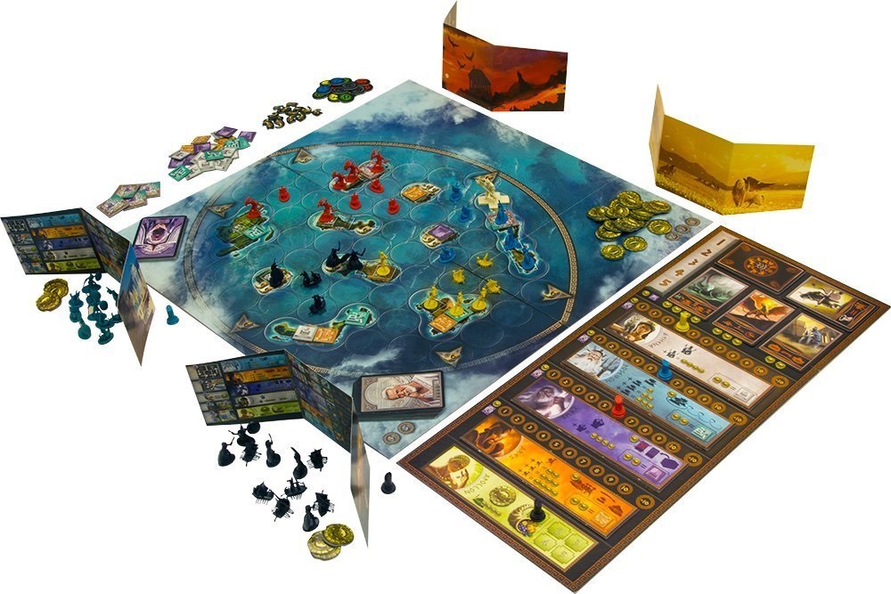 Игровое действие разворачивается на поле, состоящем из двух частей. В зависимости от количества участников игры оно собирается по-разному, чем больше участников – тем больше островов на нем. Острова имеют разный размер, но и на самых маленьких можно найти пропитание и даже построить метрополию. Контроль морских проходов между некоторыми островами также способен приносить доход от торговли.