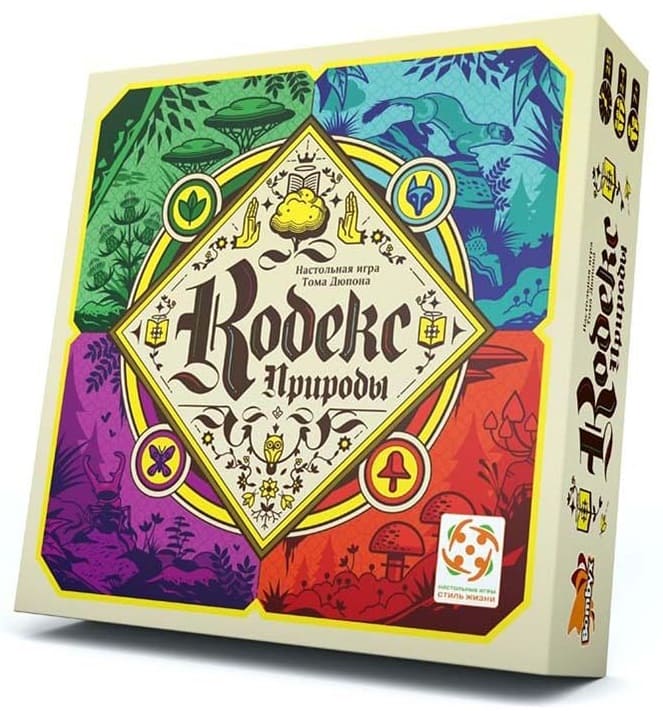 «Кодекс природы» – это карточная игра, в которой участникам предстоит выкладывать свои карты, собирая из них целую паутину, и попутно выполнять задания, получая за это победные очки. Рассчитана она на компанию от 2 до 4 игроков возрастом старше 7 лет.
