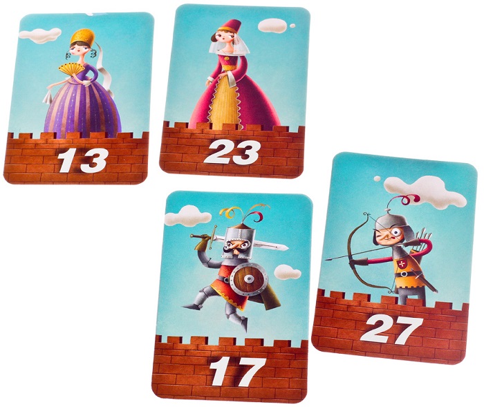 В начале партии «Королевского замка» участники раскладывают карты в закрытую в центре стола, а также размещают карточку первой башни перед собой. В свой ход игрок должен взять карту и перевернуть ее, показав остальным. На всех картах написано число и изображен рисунок. Положить карту к себе можно только в том случае, если число на открытой карте больше, чем на последней карте в своем ряду. Если игрок по тем или иным причинам решил не класть к себе карту, то он переворачивает ее рубашкой вверх, кладет назад и завершает ход.