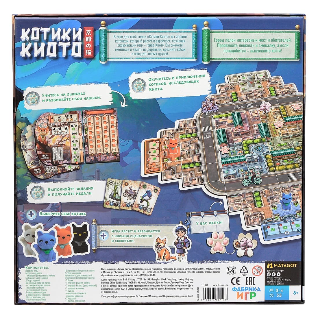 «Котики Киото» – приключенческая игра, в которой участникам в образе пушистых котиков предстоит отправиться в Японию и исследовать улицы и парки современного города Киото следуя нескольким независимым и повторяющимся игровым сценариям. Каждый сценарий предполагает выполнение игроками определенных миссий, основанных на системе навыков, это может быть дружба со школьником, борьба с агрессивной бездомной кошкой или кража корма из миски другого кота.