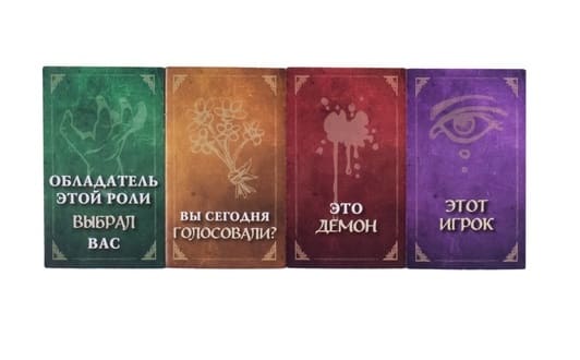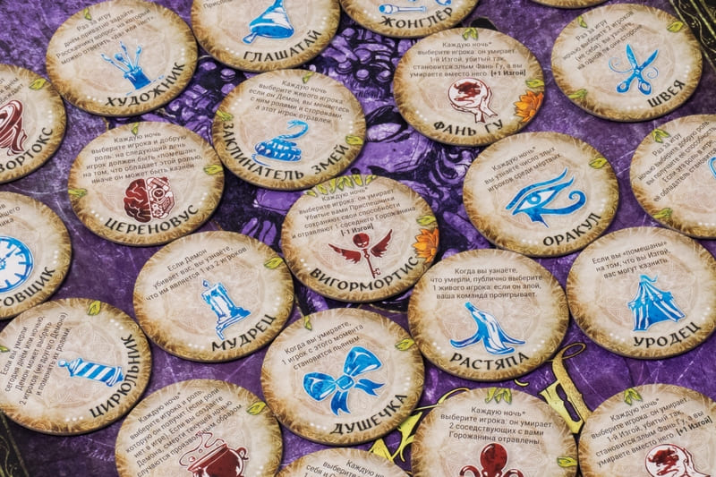 В игре множество различных ролей. Каждый участник получает жетон с персонажем, обладающим уникальной способностью. Горожане используют свои силы для поиска истины, Изгои невольно мешают доброй команде, а Приспешники помогают Демону сеять хаос и ложь.