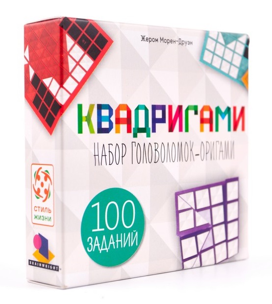 "Квадригами" - это настольная игра-головоломка на развитие пространственного мышления и логики. Ее название происходит от 2 слов - "квадрат" и "оригами". У нее очень простые правила, но вот над поиском решения некоторых заданий придется сильно задуматься.