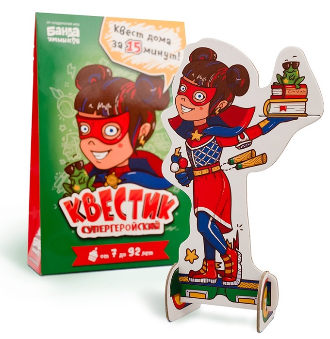 Внутри 7 карт-загадок, которые вам предстоит решить: среди них загадки-пазлы, карты со скретч-слоем и глянцевым лаком, скрывающим рисунок, лабиринты из букв и карты с наклейками. Квест — это цепочка заданий, которые следуют друг за другом. Он создает захватывающий сценарий детского праздника и увлекает всех: и взрослых, и детей. А организация займет у вас всего 15 минут!