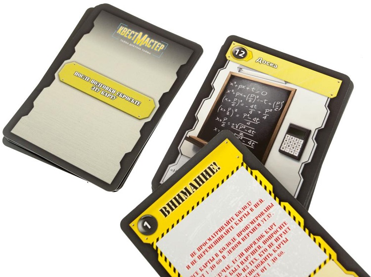- 60 карточек с описанием ситуации, головоломками и подсказками;