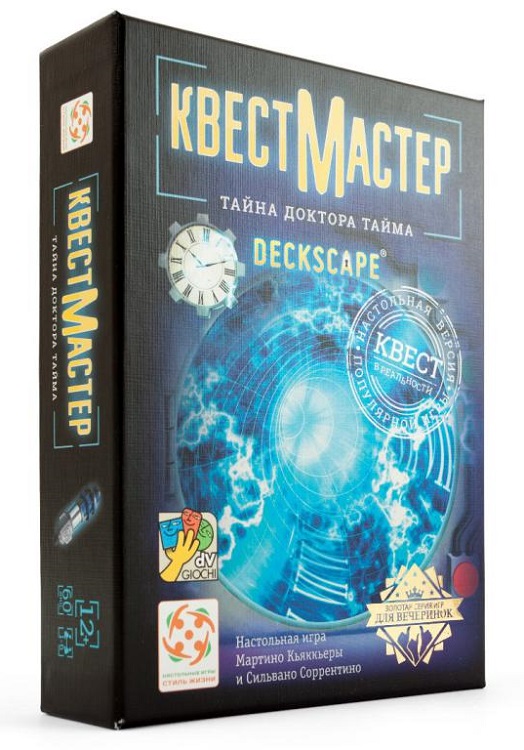 Сюжет настольной игры «КвестМастер: Тайна Доктора Тайма» отправляет игроков в темное помещение таинственной лаборатории. Первая загадка, встречающая вас – три светящиеся на стене кнопки. Что может означать их свет в кромешной темноте? У вас час на решение этой и множества других задач.