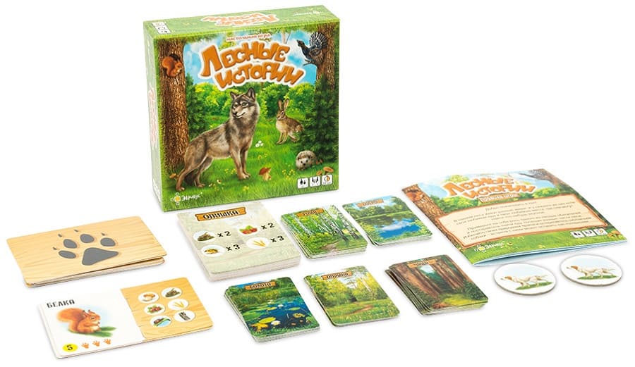 «Лесные истории» - настольная игра, которая в увлекательной форме познакомит своих участников с лесными обитателями, их вкусовыми предпочтениям, и где они пытаются раздобыть свое пропитание. Эта познавательная игра рассчитана для проведения интересного и полезного досуга взрослых и детей в возрасте от 5 лет.