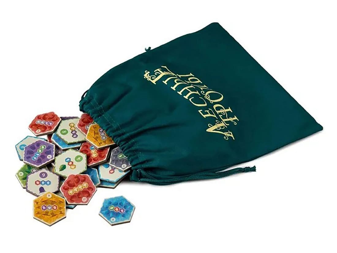 - Высокое качество: Компоненты выполнены из очень плотного картона, а в комплект входит качественный тканевый мешочек для тайлов.