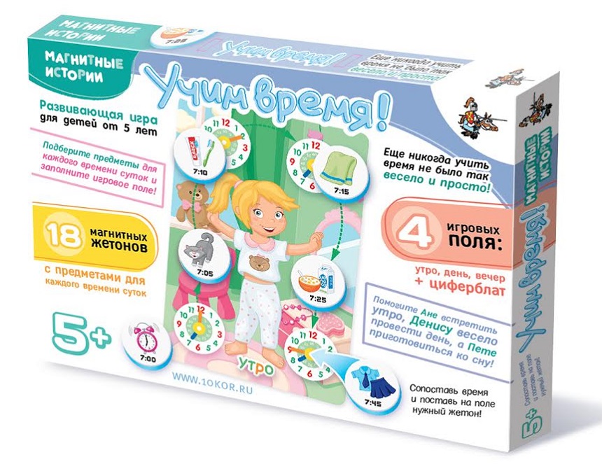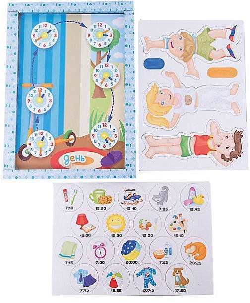 - 18 магнитных жетонов с предметами и указанием на них времени;