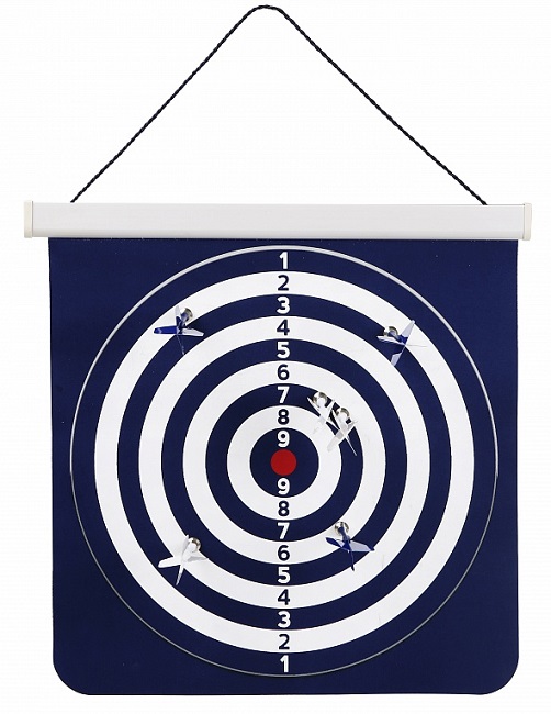 Главная особенность данного магнитного дартса – его мишень. Ее очень легко вешать на стену, и еще удобней хранить, просто свернув в трубочку. Двусторонняя разметка магнитной мишени позволяет играть во все самые популярные разновидности игры: Циферблат, Диаметр, Раунд, 501 и 1000. В наборе также 6 магнитных дротиков с двумя цветами хвостов.